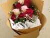 • بوكيه هاند جوري ابيض واحمر ولفه ورق بيج