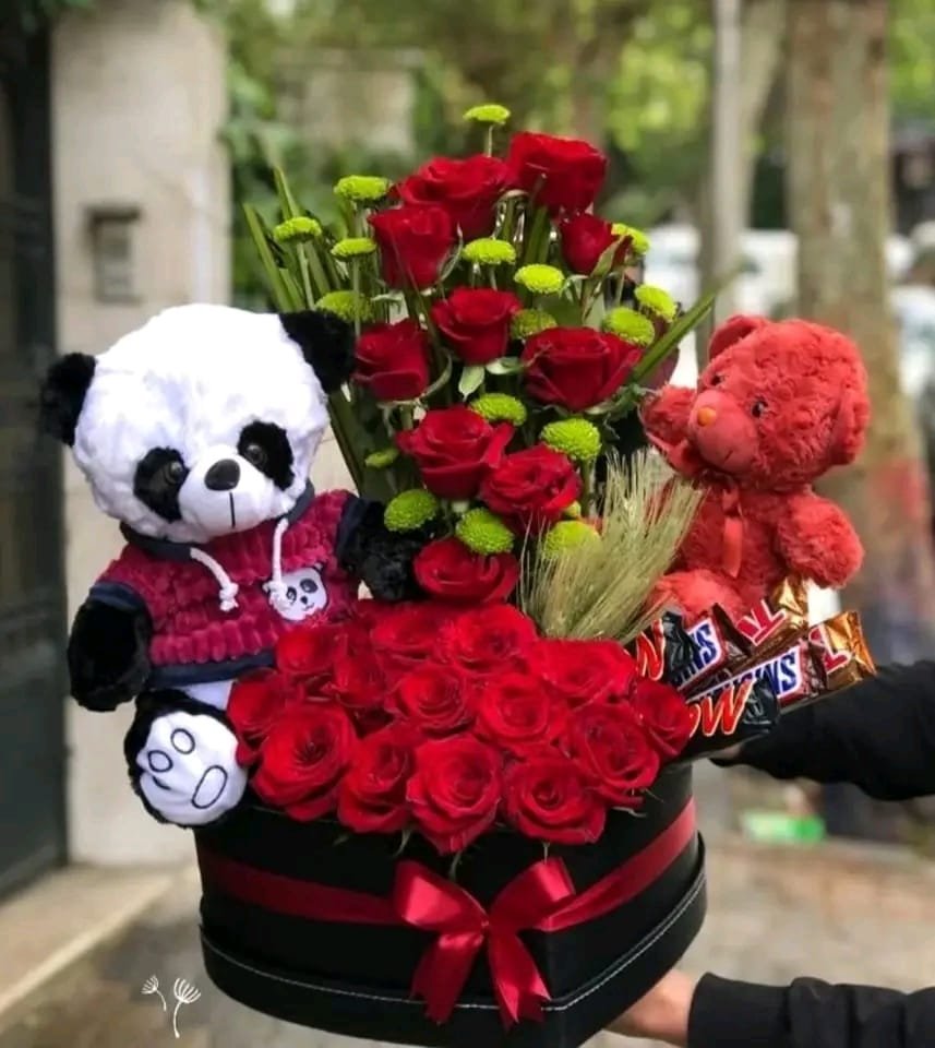 بوكس به اتني دبدوب وورد جوري احمر وكرازنتم اخضر