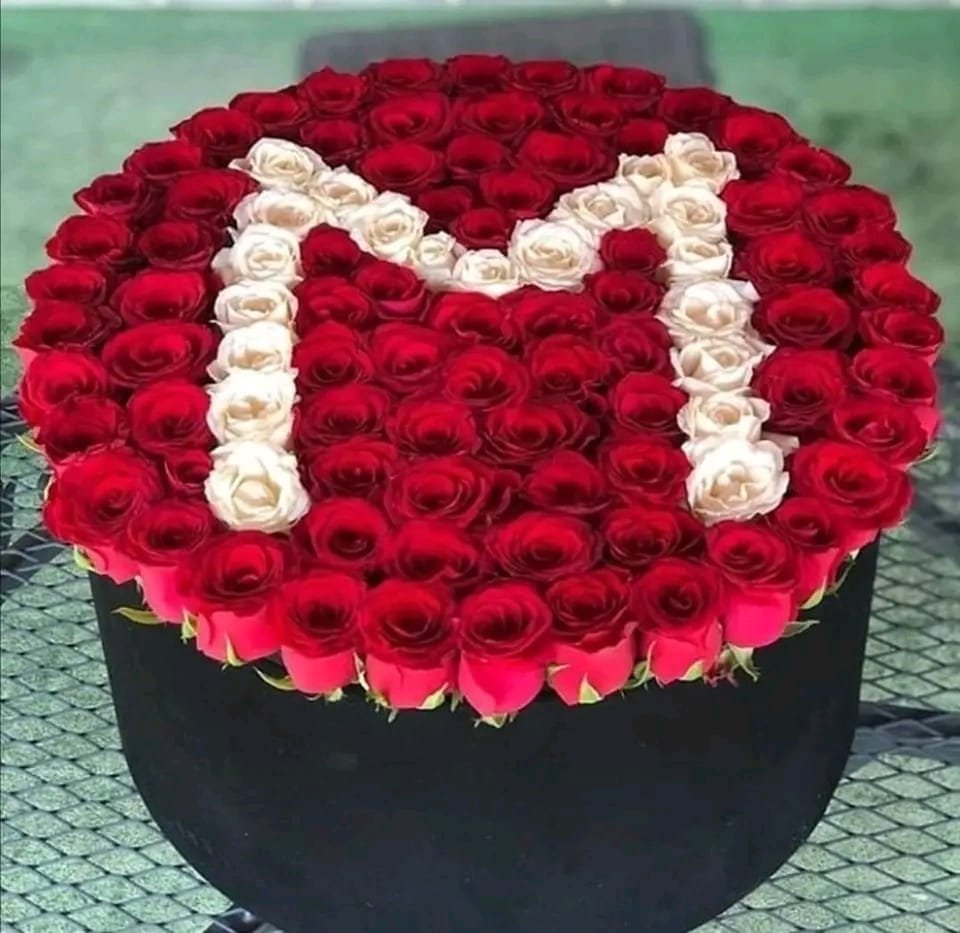 بوكس ورد جوري احمر بداخله حرف بالابيض