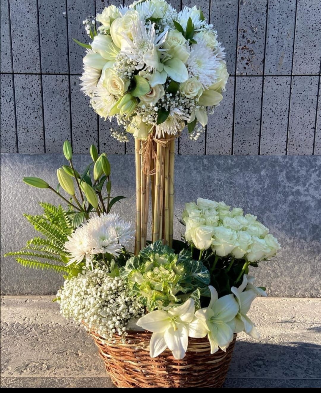 بوكيه استاند يحتوي على تشكيله رائعه من الورد الجوري المستورد والكرازنتم والليليم