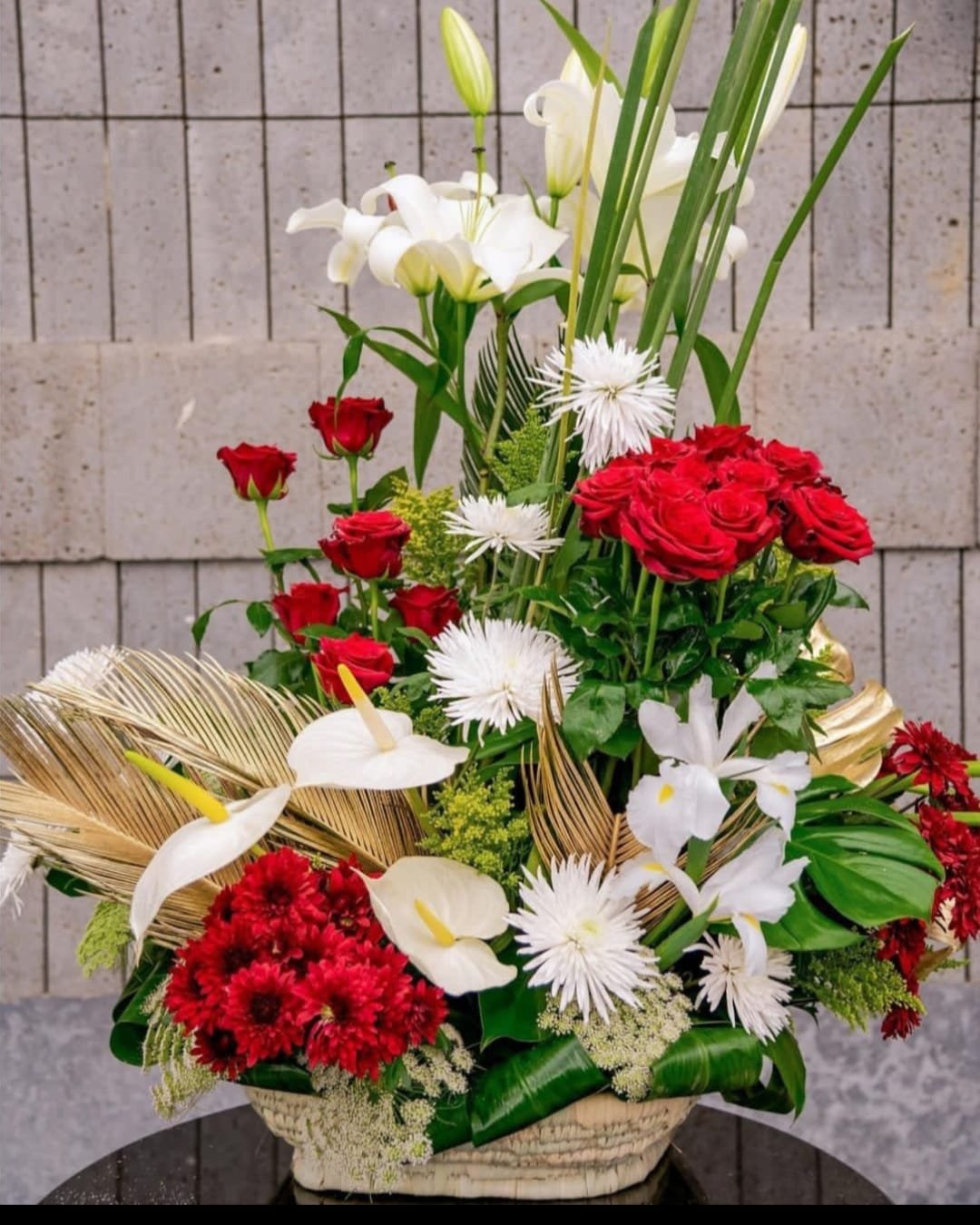 بوكيه استاند يحتوي على تشكيله رائعه من باقات الزهور المستورده وهي عباره عن ورد جوري ورازنتم ويليم وانتريم