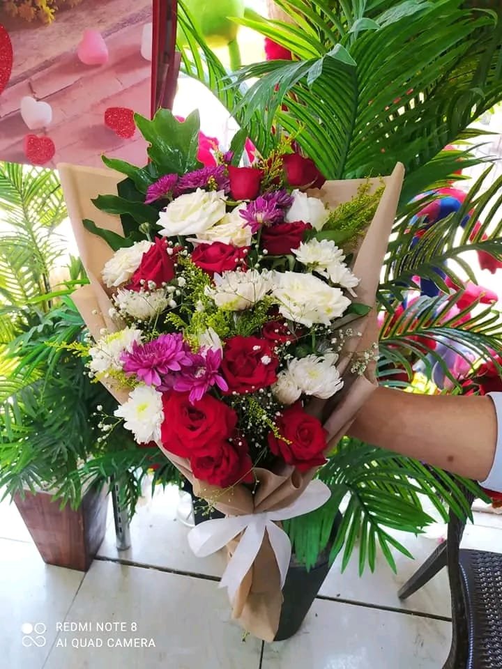 بوكيه هاند بجوري ابيض واحمر وكرازنتم ابيض بلفه بيج وشريط ابيض