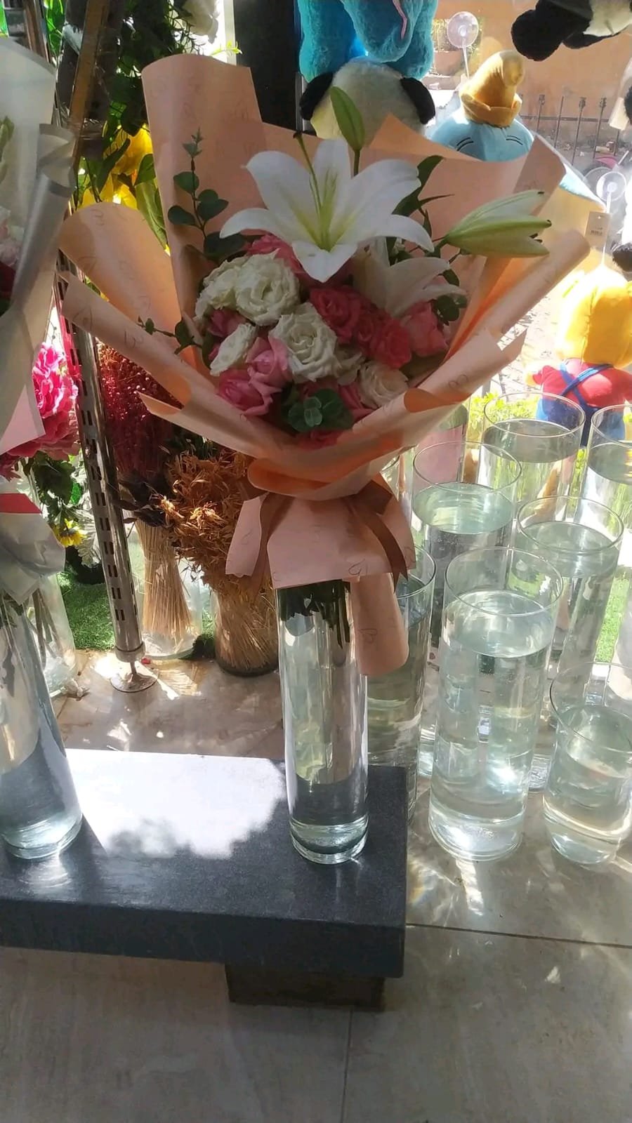 بوكيه هاند بليليم وجوري ابيض وروز بلفه روز