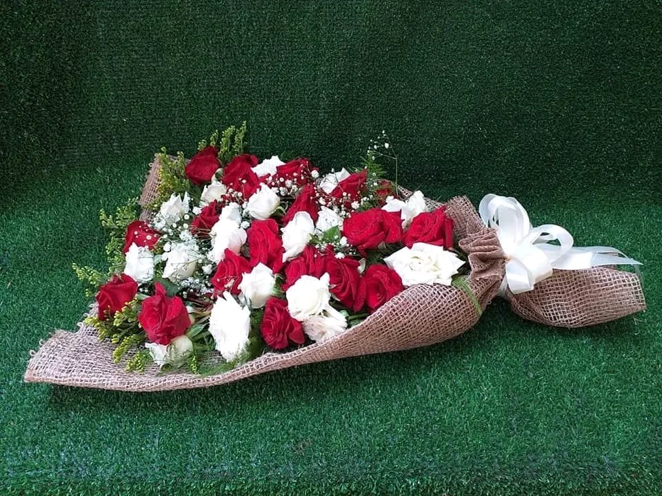 بوكيه هاند جوري ابيض واحمر وبيبي فلاور ولفه خيش