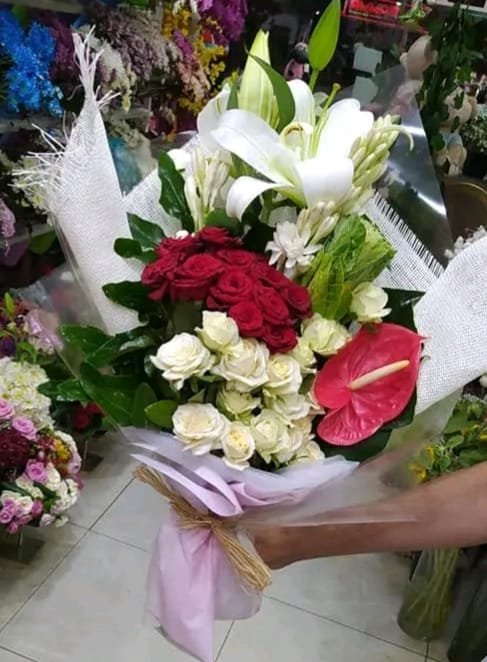بوكيه هاند جور اجمر وابيض وليليم