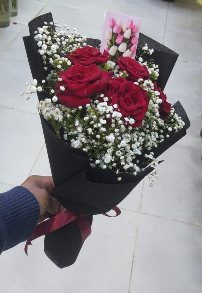 بوكيه هاند حجم صغير بيبي فلاور وورد احمر