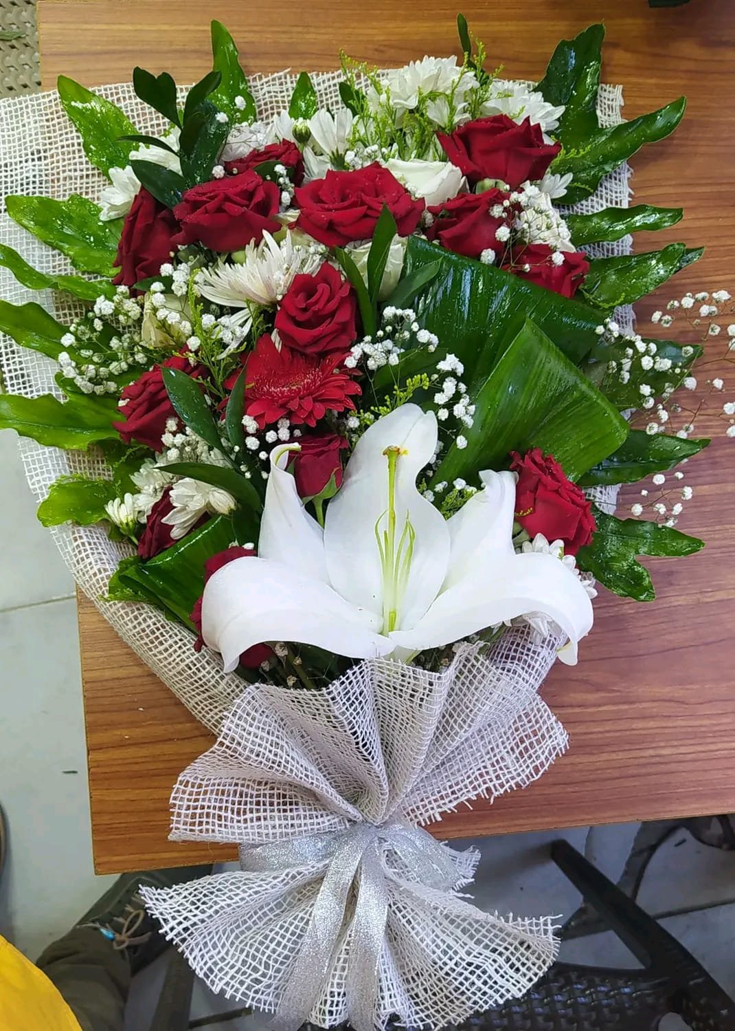 بوكيه هاند ليليم وجوري وكرازنتم وبيبي فلاور