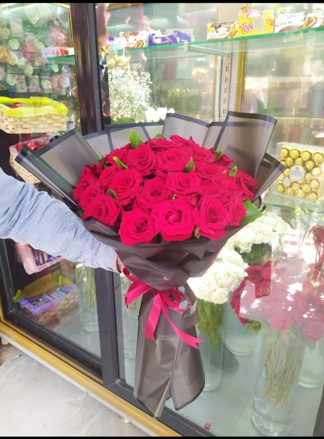 بوكيه هاند ورد احمر ولف سوده