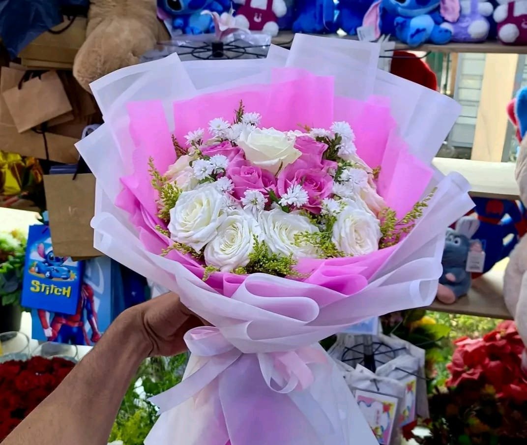 بوكيه هاند ورد جوري ابيض وبينك