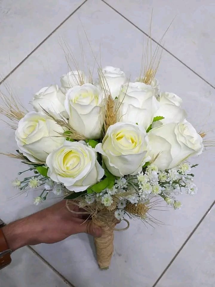 جرب صناعي ورد جوري ابيض وبيبي فلاور ابيض صناعي بهاند كتان