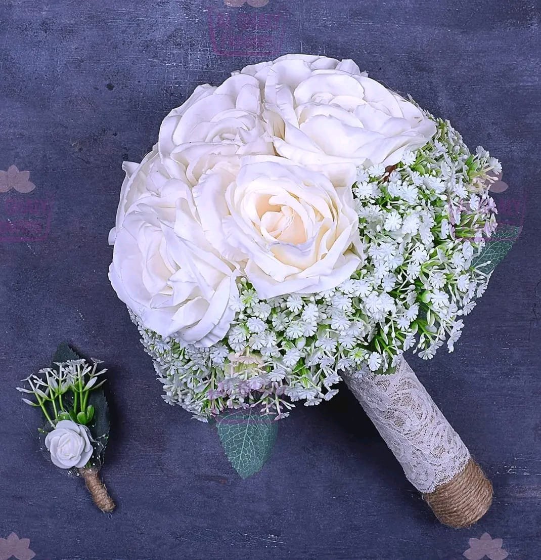 جرب صناعي ورد جوري ابيض وبيبي فلاور صناعي بهاند ستان ابيض