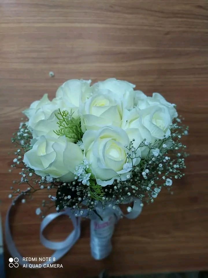 جرب صناعي ورد جوري ابيض وبيبي فلاور صناعي بهاند ستان بيضا